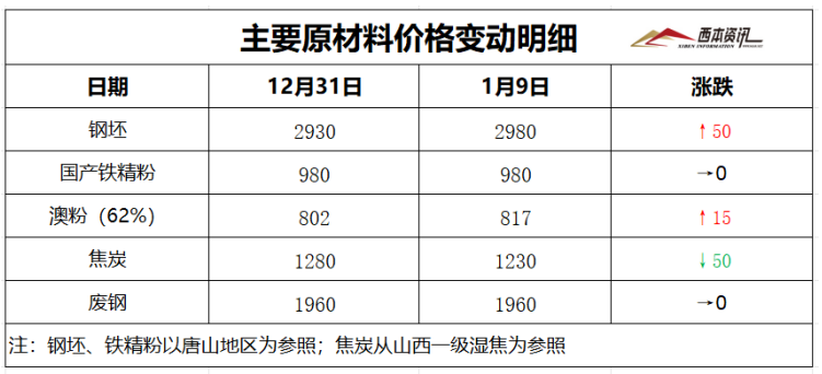 (1)上周國內(nèi)建筑鋼材行情窄幅整理,截至1月9日,西本指數(shù)報在3520,周環(huán)比持平。