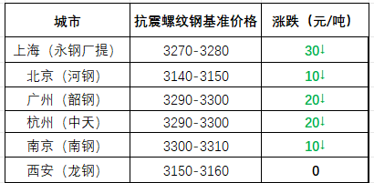 今日行情走勢(shì)為回調(diào)出貨,據(jù)西本跟蹤統(tǒng)計(jì)的69個(gè)城市建材報(bào)價(jià),開(kāi)盤(pán)下跌區(qū)域占比78%,持平市場(chǎng)占比22%,午后多數(shù)回穩(wěn);截至收盤(pán),上海、杭州、南京等地主導(dǎo)資源價(jià)格下跌10-30元。據(jù)上海市場(chǎng)反饋,今天庫(kù)提小廠抗震螺紋鋼高低區(qū)間在3150-3180元,廠提永鋼螺紋鋼基價(jià)區(qū)間在3240-3250元/噸。